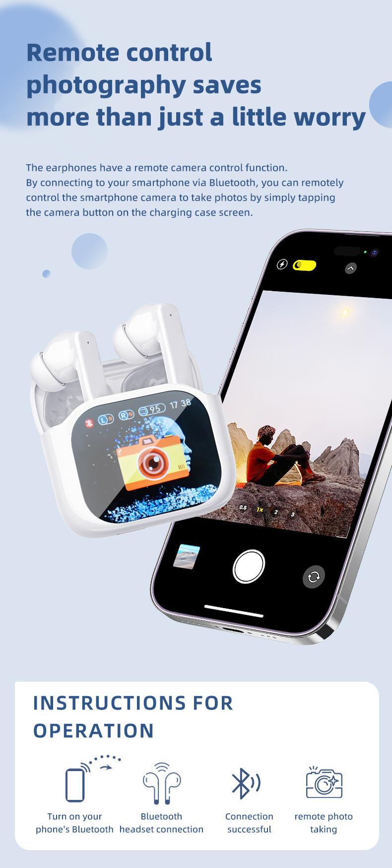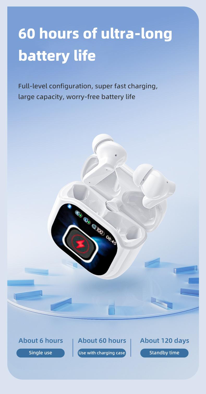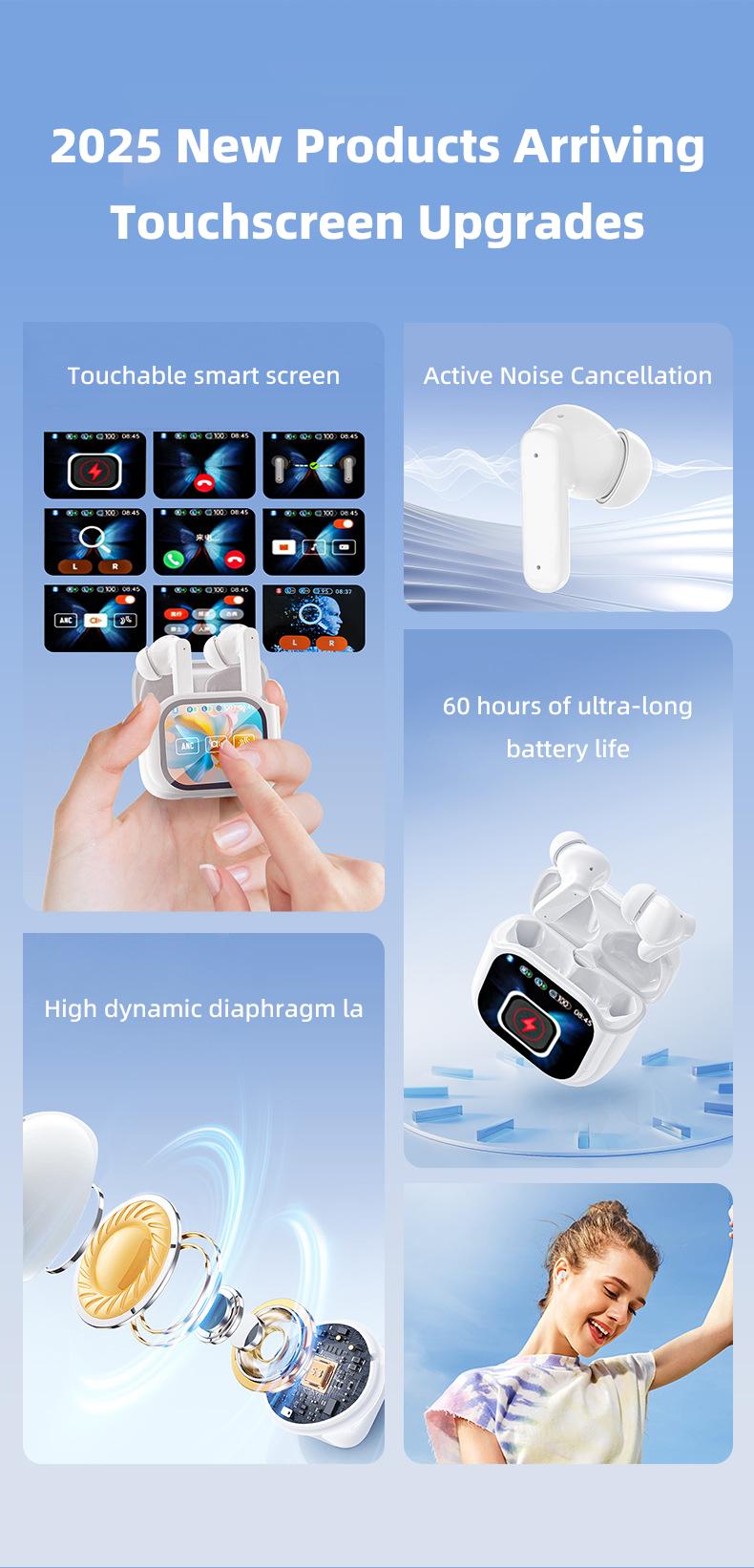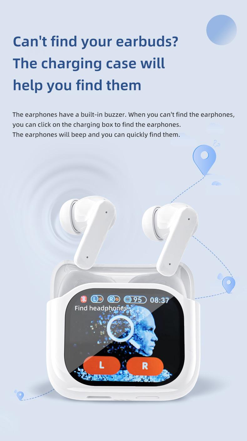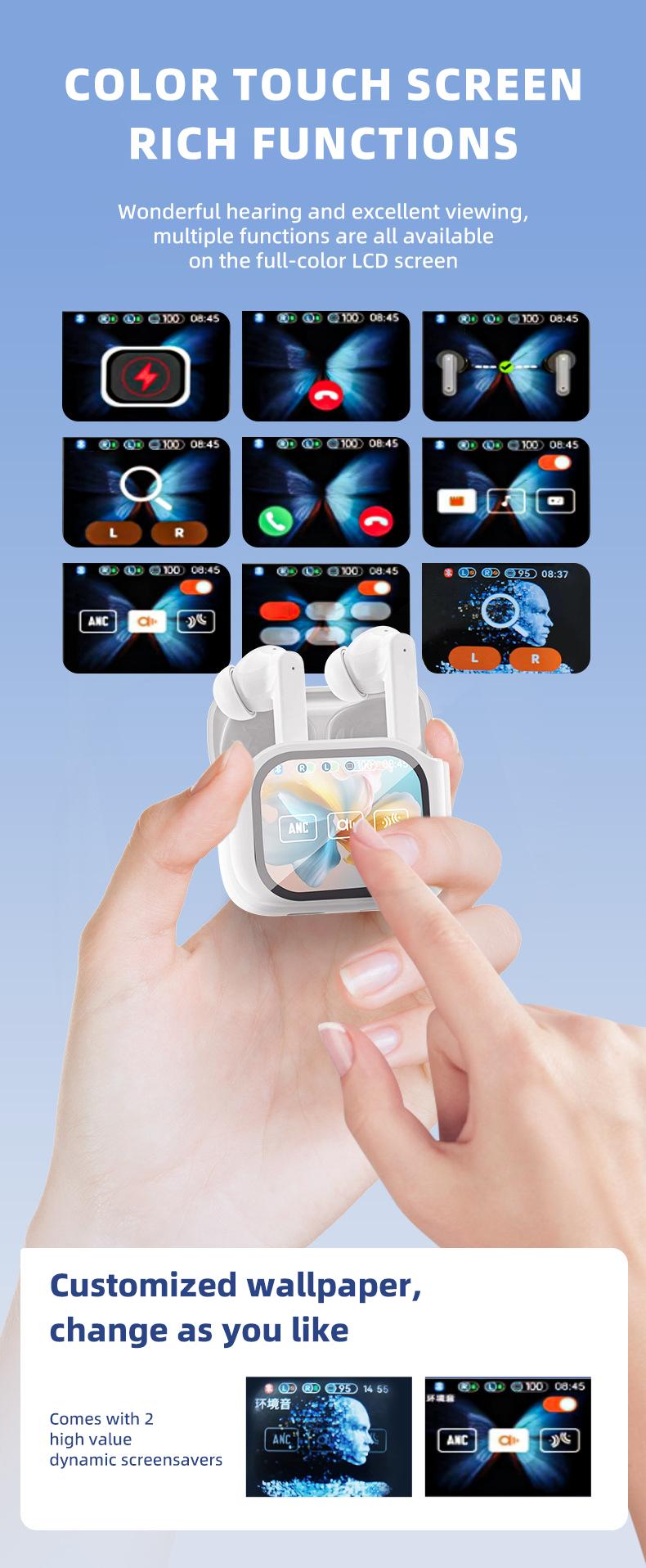 Jm19 Black Premium Bluetooth 5.4 Wireless Earbuds with Smart LED Touch Screen ANC Noise Cancelling IPX7 Waterproof In-Ear Headphones Hi-Fi Stereo Sound Long Battery Life Perfect for Gym Running Travel Stylish Gift Ideas